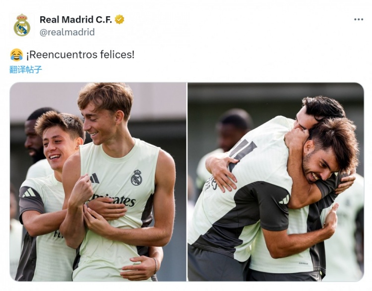 9月10日讯 皇马官方更新社媒动态,晒出从国家队归来球员的照片。